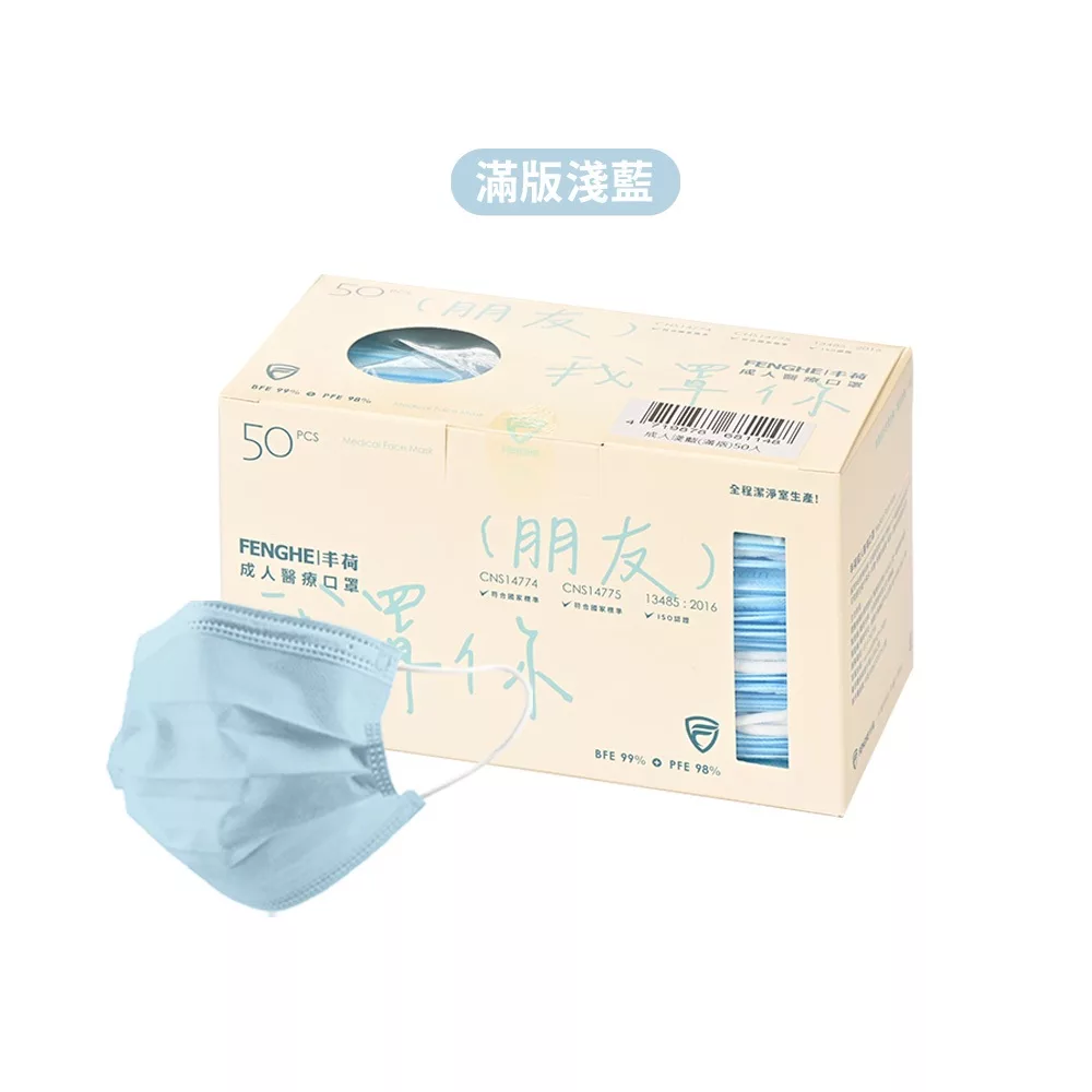 / 丰荷 醫用成人平面口罩50入 滿版 防疫時尚 基本色 下殺 特惠 醫療 口罩 我罩你規格:淺藍
