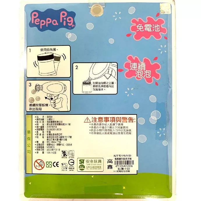 ✔免電池 輕扣板機,泡泡就會源源不絕的吹出來~ 適合年齡 : 3歲以上 【商品尺寸】 8.5 x 13.5cm 【使用方法】 1、 使用前先將泡泡瓶搖一搖 2、 打開泡泡瓶之上蓋,將吹孔伸進瓶內沾取泡泡水 3、 連續按壓板機,吹出泡泡 【退換貨服務】 鑑賞期非試用期,退回產品必須是全新狀態且包裝完整 ( 保持產品、附件、包裝、廠商紙箱及所有附隨文件或資料之完整性 ) 。 【購買注意事項】 網路店所售出的商品僅可在網路店進行退換貨服務,將無法在全國佳瑪實體門市進行退換貨、退款服務。若與實體門市價格不同時,請以網站公告為主。 ●依據消費者保護法之規定,食品類商品屬於易於腐敗、保存期限較短之商品,蝦皮鑑賞期規範效期在兩個月內之商品,於收受商品後將無法享有猶豫期之權益且不得辦理退貨。 ●網頁商品會因為使用不同的品牌螢幕以及解析度不同,造成圖片顏色呈現略有不同,請以實品顏色為準。