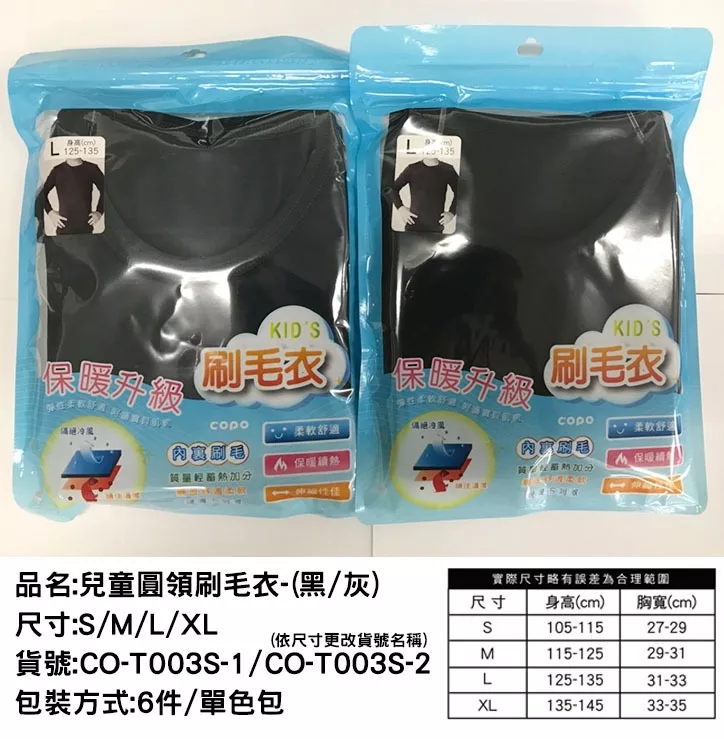 兒童圓領刷毛衣 S-L款式:深灰 L