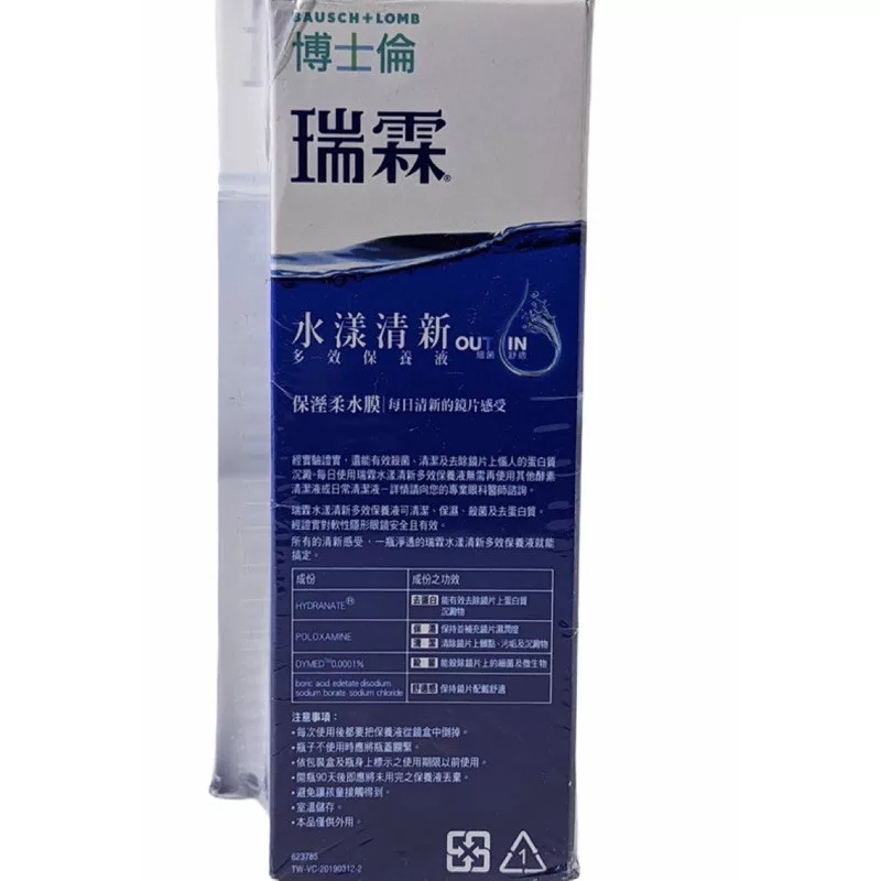 【超商取貨限制】每筆訂單最多5kg(9個)(無法與其他商品合購) 超過5kg,請選擇賣家宅配。謝謝配合! 【商品規格】 355+120ml 【商品介紹】 概念源自健康淚液,獨特創新配方 讓配戴隱形 眼鏡的雙眼舒適一整天! 玻尿酸保濕20小時 pH7.5與淚液相似 雙效殺菌徹底潔淨 智能蛋白質管理 許可證核准字號:衛署醫器輸字第021591號 藥商名稱:博士倫股份有限公司 藥商地址:台北市大安區敦化南路二段95號16樓 製造廠名稱:Bausch & Lomb Incorporated. (Greenville Solutions Plant) 製造廠地址:8507 Pelham Road, Greenville, SC 29615-9598, USA 保存期限:2年 產地:美國 貨源:原廠公司貨 製造日期:如外盒標示(製造日期會因庫存批次而有所不同,請詳見產品包裝標示) 定期校正之服務及據點資訊:無 ▲消費者使用前應詳閱產品說明書 【使用方式】 步驟一:至少滴 3 滴保養液於鏡片正反面,輕柔搓洗 20 秒。無需再使用其他清潔液。 步驟二:以保養液徹底沖洗 5 秒去除鏡片表面髒汙。 步驟三:將鏡片置於鏡盒中,並注滿保養液浸泡至少 4 小時。每次請使用新鮮的 Biotrue 多效保養液,切勿重複使用。 【使用注意事項】 請置於陰涼乾燥處,避免高溫或陽光直曬。 【退換貨服務】 鑑賞期非試用期,退回產品必須是全新狀態且包裝完整 ( 保持產品、附件、包裝、廠商紙箱及所有附隨文件或資料之完整性 ) 。 【購買注意事項】 網路店所售出的商品僅可在網路店進行退換貨服務,將無法在全國佳瑪實體門市進行退換貨、退款服務。若與實體門市價格不同時,請以網站公告為主。