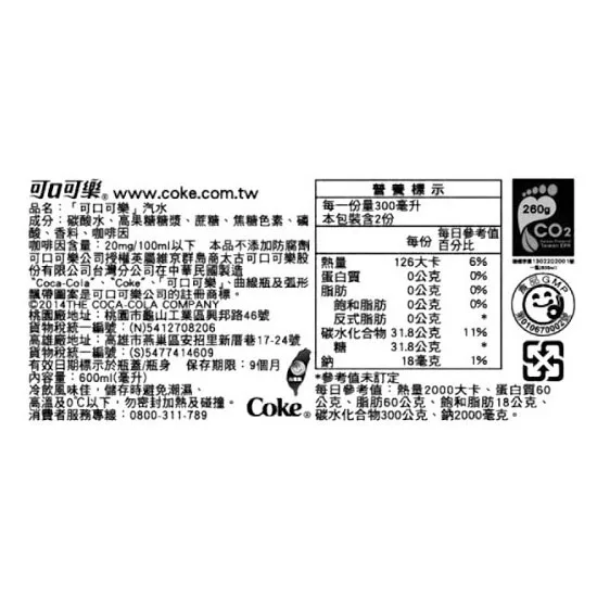 / 可口可樂(原味) 600ML