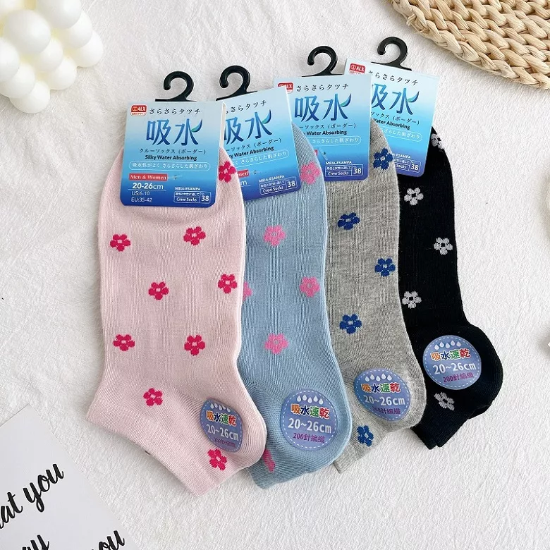 【商品規格】 尺寸: 20-26cm 材質:70%聚酯纖維、27%彈性纖維、3%橡膠 混款隨機出貨 產地:中國 【商品介紹】 -可愛的小花短襪 -輕薄材質適合炎熱天氣穿著 【洗滌須知】 ※首次1~3次洗滌時深色/飽和色系布料會釋於出多餘浮色,此屬於正常現象,清洗請使用中性洗劑搭配40度以下冷水手洗、自然晾乾,如需要洗衣機清洗請放入洗衣袋並與其他類衣物分開清洗。避免長時間浸泡,深淺色建議分開洗滌,避免染色。不可以烘乾、熨燙、漂白、乾洗等,否則會降低使用壽命。 溫和洗滌最高30度/不可漂白/可烘乾不超過60度/不可熨燙/不可乾洗 清洗時切勿使用強力洗衣精及漂白劑和柔軟精等清洗劑 【購買注意事項】 ※注意!以下情況”不”屬瑕疵狀況,恕不接受瑕疵退換貨: (1)線頭、釦眼未開、些許脫線、極小的汙點、平放測量尺寸1~2cm的誤差、照片色差。 (2)新品多少會有原布料或及其染劑的氣味,先通風、後清洗,狀況即可漸漸清除。 (3)印刷商品多少會有印染不均現象及膠印點點脫落/印染小色斑(0.5平方公分以下) (4)因技術無法改善之缺點。(如:穿著後起毛球、深色衣物輕微退色、棉襪因換線造成的空隙、絲襪勾破、因未放洗衣袋造成衣物損壞…等) ◆商品圖片僅供參考,產品顏色尺寸可能會因網頁呈現與拍攝關係而有些許色差貨公差,請依實際供貨樣式為準。如無法接受請勿下標。 【退換貨服務】 ◆商品須為全新狀態且完整包裝。 下單前: 1.請確認選購的商品尺寸、顏色款式……等,如有問題請聊聊詢問。 下單後: 1.商品瑕疵或出貨有誤,收到商品後立即反應佳瑪會即時協助處理問題。 2.鑑賞期」非「試用期」,商品經拆封、使用後導致商品缺乏完整性,恕不提供退換貨服務。 依照消費者保護法第十九條通訊交易解除權合理例外情事準用原則,內衣褲、褲襪類、襪子等個人貼身衣物用品,商品一經拆封,恕無法退換貨。