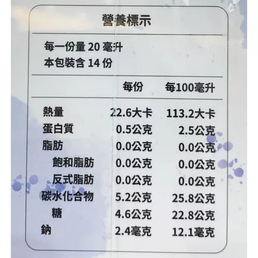 【商品規格】 20ml/包,14包/盒。 產地:台灣 貨源:國內原廠公司貨 【商品介紹】 滋補強身:每包中「葡萄糖胺」額外添加「軟骨素」,形成完整保護 精神旺盛:PLUS添加「專利二型膠原蛋白」,獨特製程取自雞胸軟骨能完整保留。 骨骼保健:添加鈣與鎂,有助於骨骼與牙齒的正常發育。 輕鬆入口:特別添加香檬原汁,保留香檬風味,無藥味。 【成份說明】 水、果糖、香檬原汁、葡萄糖胺鹽酸鹽、濃縮紅葡萄果汁、乳酸鈣、硫酸鎂、雞胸軟骨萃取膠原蛋白(含第二型膠原蛋白、軟骨素、玻尿酸、葡萄糖胺)、L-抗壞血酸、軟骨素。 【使用方式】 建議飯前使用,每日建議食用一日1~2包。 【有效日期說明】 90天~365天-以消費者收受日起算,至少距有效日期前30日以上 【過敏原資訊】 服用慢性病藥物或特殊體質者,食用前應先諮詢營養師或醫師。本產品含有甲殼類及其製品,不適合對其過敏體質者食用。 【使用注意事項】 請置於陰涼乾燥處,避免高溫或陽光直曬。 【退換貨服務】 鑑賞期非試用期,退回產品必須是全新狀態且包裝完整 ( 保持產品、附件、包裝、廠商紙箱及所有附隨文件或資料之完整性 ) 。 【購買注意事項】 網路店所售出的商品僅可在網路店進行退換貨服務,將無法在全國佳瑪實體門市進行退換貨、退款服務。若與實體門市價格不同時,請以網站公告為主。 ●依據消費者保護法之規定,食品類商品屬於易於腐敗、保存期限較短之商品,蝦皮鑑賞期規範效期在兩個月內之商品,於收受商品後將無法享有猶豫期之權益且不得辦理退貨。 ●網頁商品會因為使用不同的品牌螢幕以及解析度不同,造成圖片顏色呈現略有不同,請以實品顏色為準。