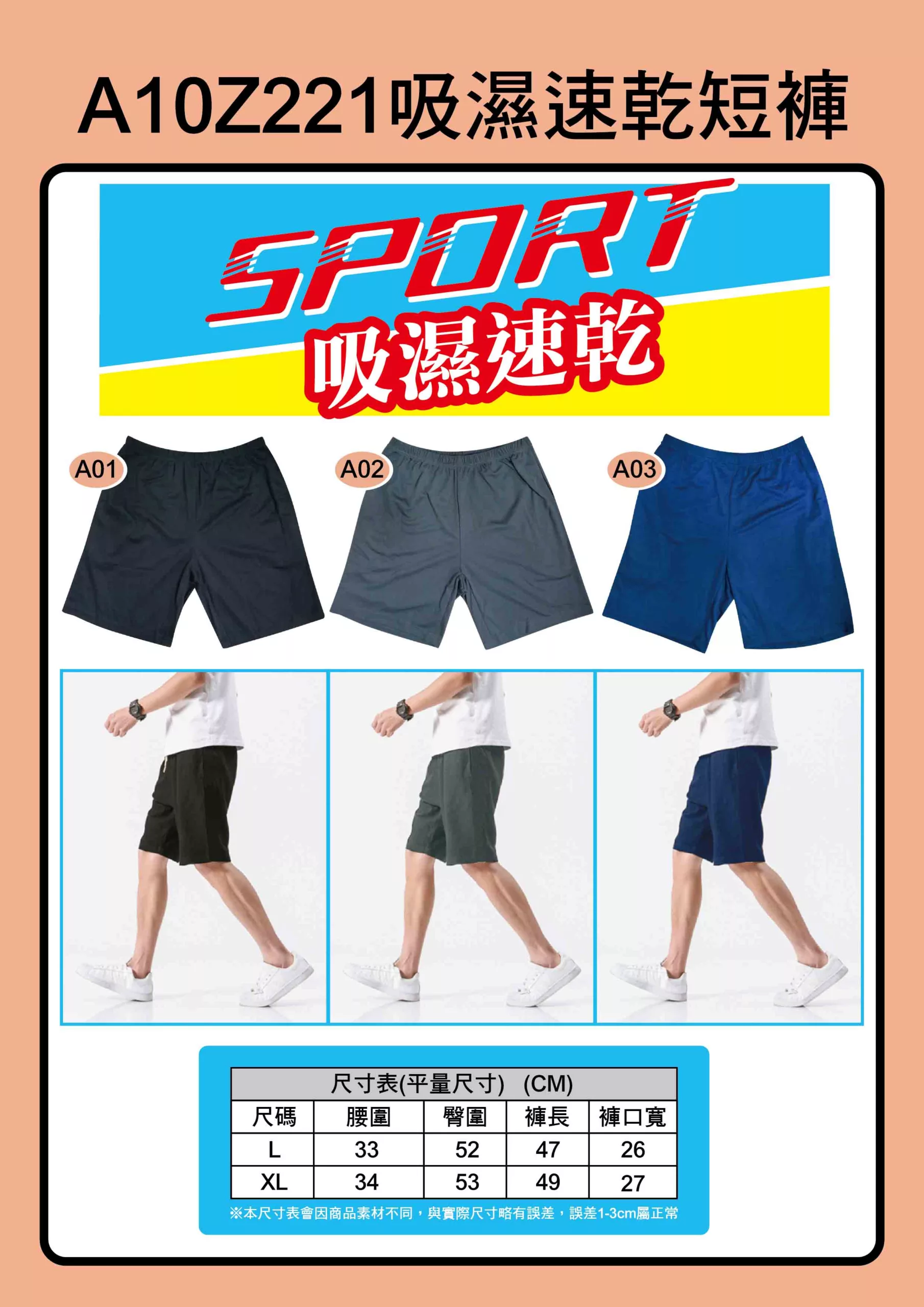 【商品規格】 尺寸:L~XL 材質:100%聚酯纖維 產地:中國 【商品介紹】 ●吸濕速乾 ●涼爽 【洗滌須知】 ※首次1~3次洗滌時深色/飽和色系布料會釋於出多餘浮色,此屬於正常現象,清洗請使用中性洗劑搭配40度以下冷水手洗、自然晾乾,如需要洗衣機清洗請放入洗衣袋並與其他類衣物分開清洗。避免長時間浸泡,深淺色建議分開洗滌,避免染色。不可以烘乾、熨燙、漂白、乾洗等,否則會降低使用壽命。 【購買注意事項】 ※注意!以下情況”不”屬瑕疵狀況,恕不接受瑕疵退換貨: (1)線頭、釦眼未開、些許脫線、極小的汙點、平放測量尺寸1~2cm的誤差、照片色差。 (2)新品多少會有原布料或及其染劑的氣味,先通風、後清洗,狀況即可漸漸清除。 (3)印刷商品多少會有印染不均現象及膠印點點脫落/印染小色斑(0.5平方公分以下) (4)因技術無法改善之缺點。(如:穿著後起毛球、深色衣物輕微退色、棉襪因換線造成的空隙、絲襪勾破、因未放洗衣袋造成衣物損壞…等) ◆商品圖片僅供參考,產品顏色尺寸可能會因網頁呈現與拍攝關係而有些許色差貨公差,請依實際供貨樣式為準。如無法接受請勿下標。 【退換貨服務】 ◆商品須為全新狀態且完整包裝。 下單前: 1.請確認選購的商品尺寸、顏色款式……等,如有問題請聊聊詢問。 下單後: 1.商品瑕疵或出貨有誤,收到商品後立即反應佳瑪會即時協助處理問題。 2.鑑賞期」非「試用期」,商品經拆封、使用後導致商品缺乏完整性,恕不提供退換貨服務。 依照消費者保護法第十九條通訊交易解除權合理例外情事準用原則,內衣褲、褲襪類、襪子等個人貼身衣物用品,商品一經拆封,恕無法退換貨。