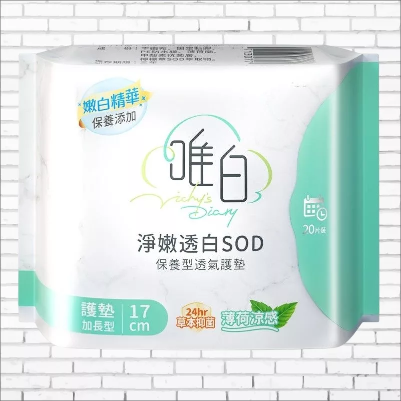 唯白淨嫩透白抑菌衛生棉 日用/夜用/護墊規格:超透氣護墊 17cm 20片