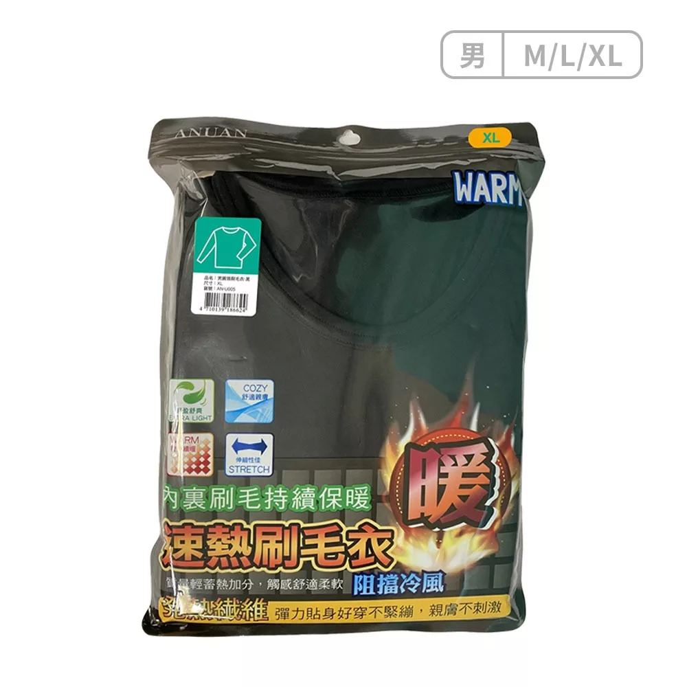 / 圓領男女款刷毛衣 保暖衣 刷毛衣 寒流首選 內裡刷毛 女生保暖衣 男生保暖衣 內搭衣 冬季內搭衣尺寸:L;規格:男