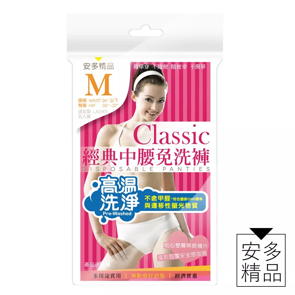 / 安多精品經典中腰免洗褲淑女型5入M /L /XL尺寸:M
