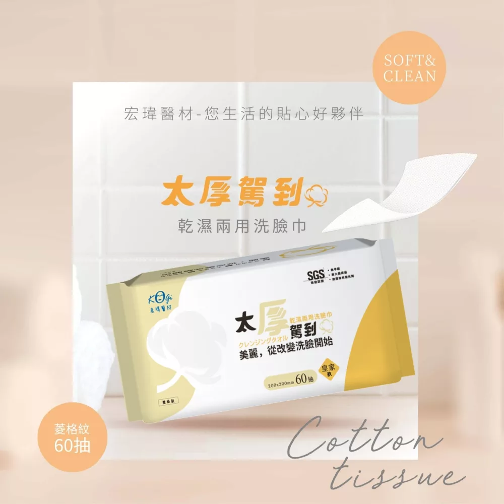 【商品規格】 規格/容量:60抽 款式:皇家款(菱格紋)/珍珠款(凸點) 產地:台灣 保存期限:3年 規格 20x20cm 貨源:國內原廠公司貨 【商品介紹】 ‧台灣製 ‧吸水度好、韌度好,柔軟親膚不掉棉絮 ‧乾淨衛生 【成份說明】 不織布 【使用方式】 乾用:柔軟擦拭,乾淨清爽。 濕用:可沾水使用,超保水、耐拉不變型。 【使用注意事項】 1.避免近火源、兒童接觸及潮濕曝曬環境。 2.使用前應保持手部清潔,勿放置於潮濕處,避免細菌孳生。 3.本產品不溶於水,請勿丟棄於馬桶避免導致堵塞。 【退換貨服務】 鑑賞期非試用期,退回產品必須是全新狀態且包裝完整 ( 保持產品、附件、包裝、廠商紙箱及所有附隨文件或資料之完整性 ) 。