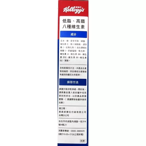 【超商取貨限制】每筆訂單最多5kg(無法與其他商品合購) 超過5kg,請選擇賣家宅配。謝謝配合! 【商品規格】 規格:175g/盒 保存期限:詳見包裝 營養標示:詳見包裝 產地:泰國 【商品介紹】 家樂氏東尼香甜玉米片,簡單製程保留穀物營養,開啟孩子活力充沛的一天! 真正整顆玉米切片壓製,簡單烘焙無複雜加工,保留穀物營養 低脂、高鐵、富含維生素A、B1、B2、C 不添加香料與色素,純素可食 【成份說明】 詳見包裝,如圖所示 【有效日期說明】 以消費者收受日起算,至少距有效日期前30日以上 【過敏原資訊】 含有麩質和大豆。本產品生產製程廠房,其設備或生產管線有處理微量花生和杏仁(堅果)。 【使用注意事項】 請置於陰涼乾燥處,避免高溫或陽光直曬。 三歲以下幼童請於成人監護下食用。 開封後請儘速食用完畢。 【退換貨服務】 鑑賞期非試用期,退回產品必須是全新狀態且包裝完整 ( 保持產品、附件、包裝、廠商紙箱及所有附隨文件或資料之完整性 ) 。 【購買注意事項】 網路店所售出的商品僅可在網路店進行退換貨服務,將無法在全國佳瑪實體門市進行退換貨、退款服務。若與實體門市價格不同時,請以網站公告為主。 ●依據消費者保護法之規定,食品類商品屬於易於腐敗、保存期限較短之商品,蝦皮鑑賞期規範效期在兩個月內之商品,於收受商品後將無法享有猶豫期之權益且不得辦理退貨。 ●網頁商品會因為使用不同的品牌螢幕以及解析度不同,造成圖片顏色呈現略有不同,請以實品顏色為準。 “