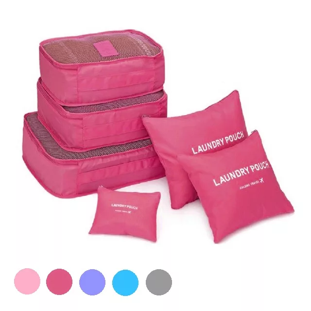 旅行收納袋 6件組/7件組 多功能 衣物 鞋子 收納袋 收納包 化妝包 收納網包 大中小規格:6件組顏色隨機