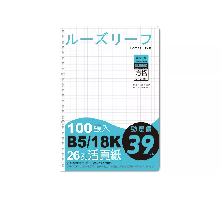 橫線 空白 方格 B5 A4 26孔/27孔 活頁紙補充包 開學季 筆記本款式:B5方格