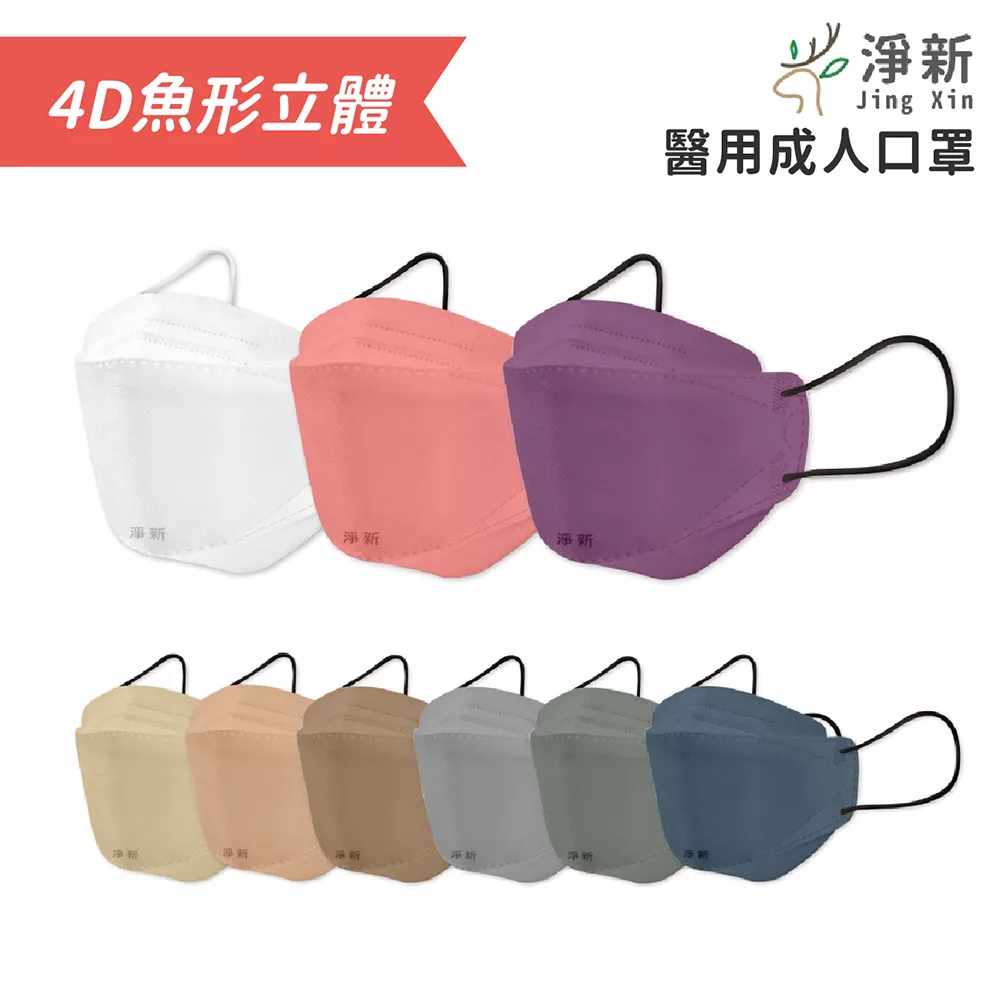 淨新 醫用成人4D魚形立體口罩 魚嘴口罩 MIT台灣製 MD雙鋼印款式:4D魚形蔚藍 耳繩白 25入