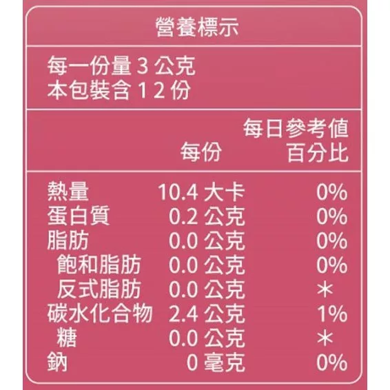 【商品規格】 36g/包,12顆/包 【商品介紹】 無糖Q軟糖,好吃又能提升美力 專為大人設計的Q軟糖,果香玫瑰 無糖、無色素、零脂肪! 產品特色 ✔︎ 添加膠原蛋白,魚鱗膠原三胜肽 ✔︎ 木糖醇取代砂糖,無糖無負擔 ✔︎ 不含六大過敏原(螃蟹、蝦子、芒果、花生、牛奶、蛋) 【成份說明】 麥芽糖醇糖漿(甜味劑)、明膠(豬來源)、木糖醇(甜味劑)、香料、蘋果酸、檸檬酸、棕櫚蠟、棕櫚油、棕櫚核仁油、膠原蛋白粉 【使用方式】 1. 請存放於陰涼乾燥處、避免日光直射與遠離高溫環境。 2. 本產品遇高溫可能有融化變形之情形,但不影響品質,請安心食用。 3. 兒童及吞嚥咀嚼困難者請小心食用。 4. 素不可食。 【使用注意事項】 請置於陰涼乾燥處,避免高溫或陽光直曬。 【退換貨服務】 鑑賞期非試用期,退回產品必須是全新狀態且包裝完整 ( 保持產品、附件、包裝、廠商紙箱及所有附隨文件或資料之完整性 ) 。 【購買注意事項】 網路店所售出的商品僅可在網路店進行退換貨服務,將無法在全國佳瑪實體門市進行退換貨、退款服務。若與實體門市價格不同時,請以網站公告為主。 ●依據消費者保護法之規定,食品類商品屬於易於腐敗、保存期限較短之商品,蝦皮鑑賞期規範效期在兩個月內之商品,於收受商品後將無法享有猶豫期之權益且不得辦理退貨。 ●網頁商品會因為使用不同的品牌螢幕以及解析度不同,造成圖片顏色呈現略有不同,請以實品顏色為準。