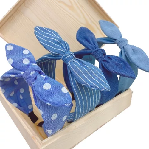 牛仔打結寬面髮圈 蝴蝶結寬版髮箍款式:直條