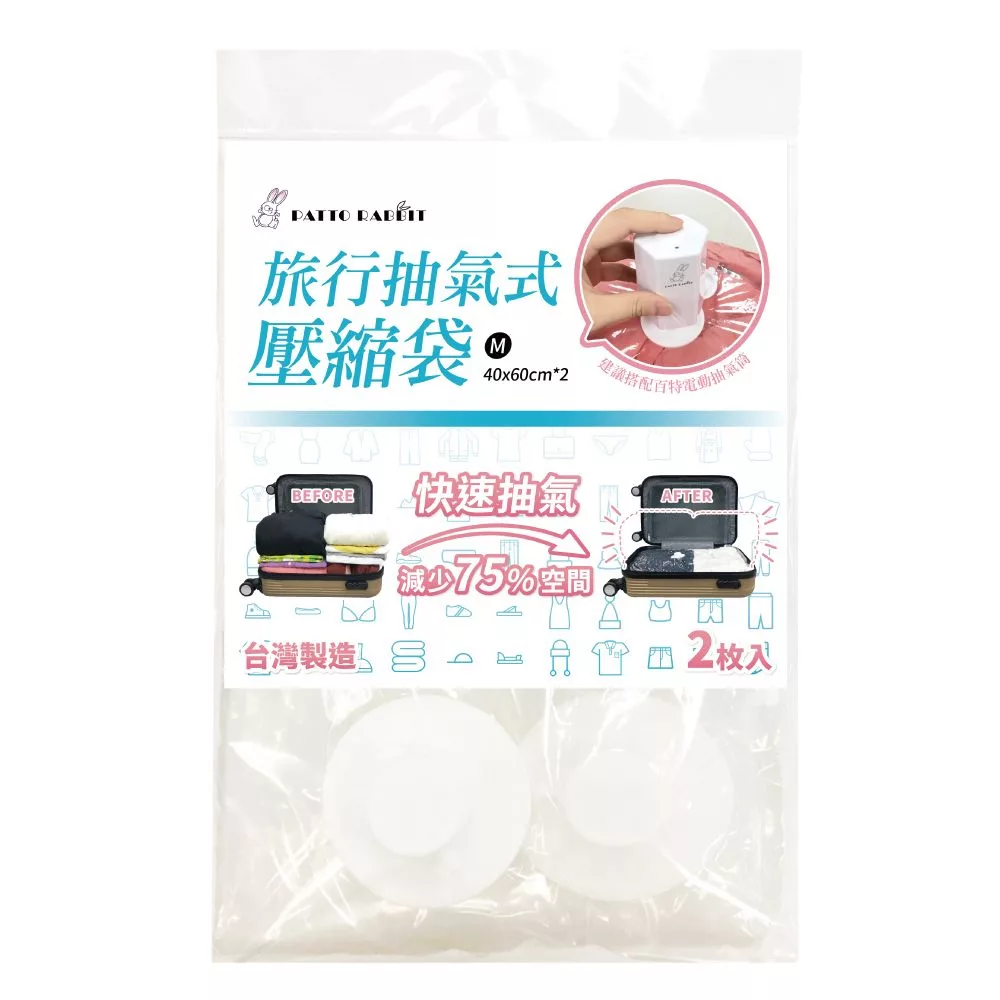 百特兔 旅行抽氣式壓縮袋2枚入 M號 L+S號 真空袋 居家收納 魔術空間尺寸:M