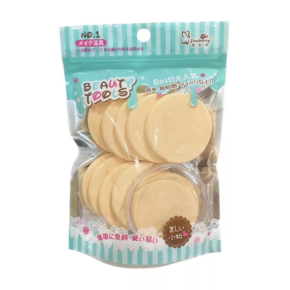 精緻小圓形粉撲-10入(贈收納盒) H-1486 圓形粉撲 粉撲 化妝海綿
