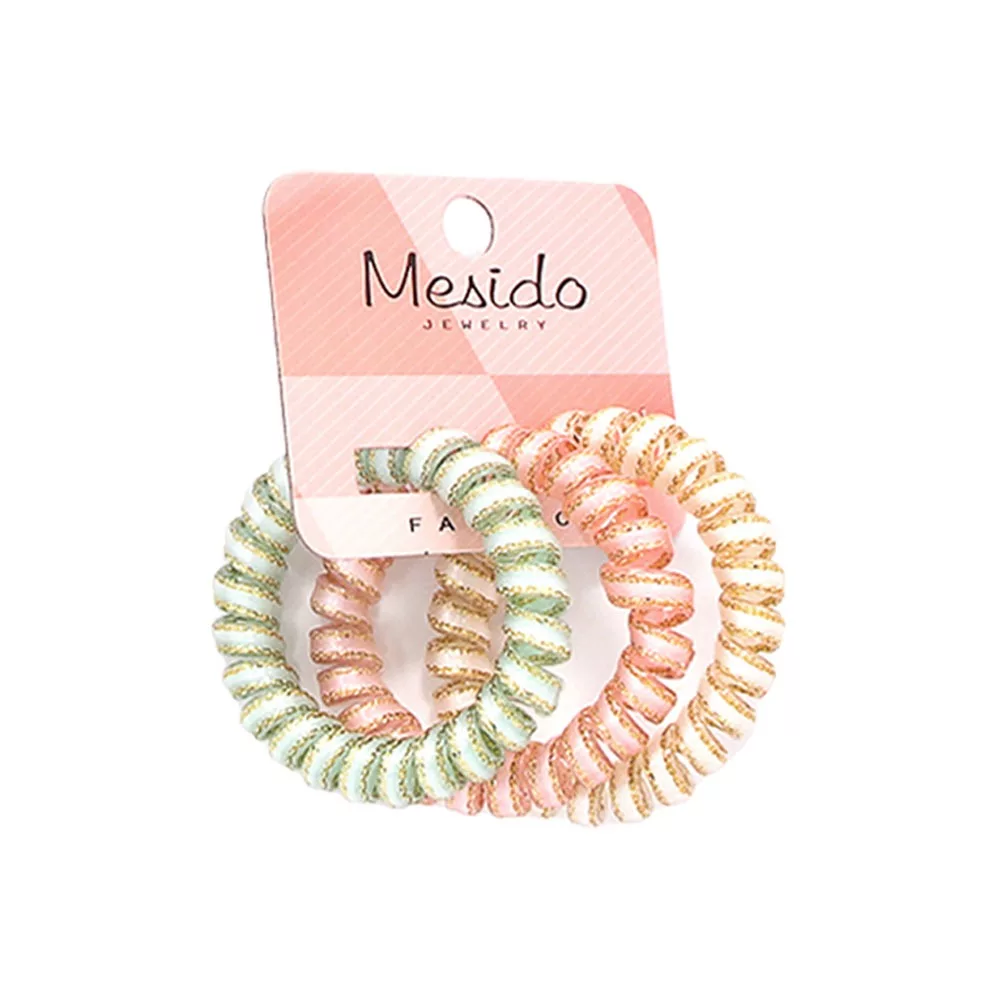/ 莫蘭迪色 電話線髮圈3入 髮束 髮飾 綁頭髮 無痕 多入組 面試 工作 外出規格:緞帶-綠粉白