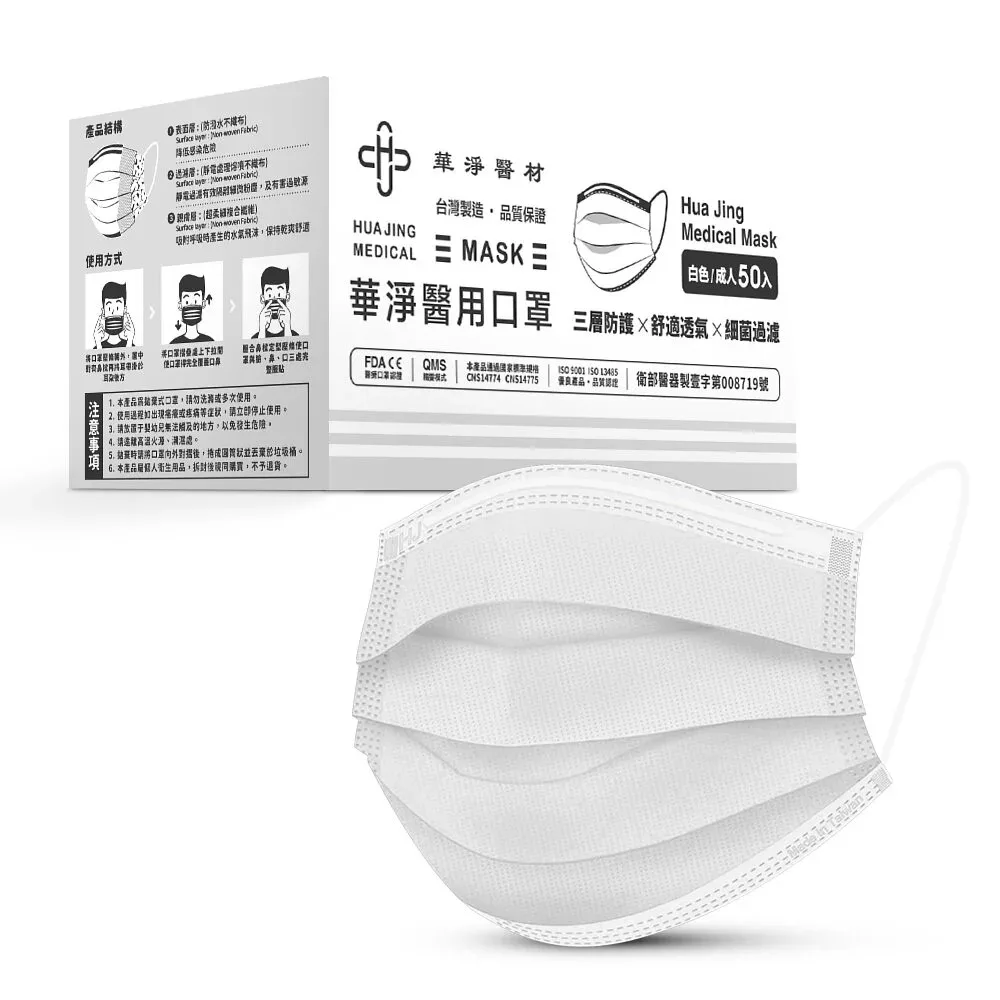 華淨 成人醫用口罩 50入 (未滅菌) 防疫 防塵 多色顏色:白色