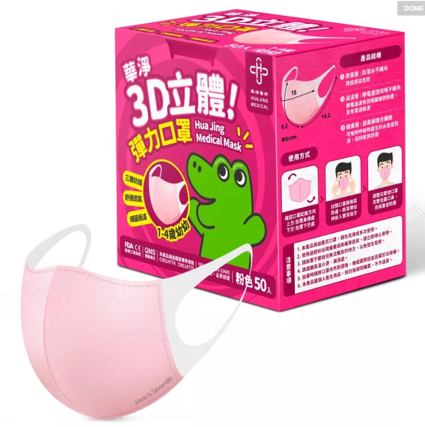 華淨3D立體口罩-幼幼50入 藍色/粉色 醫用口罩 防疫規格:粉色