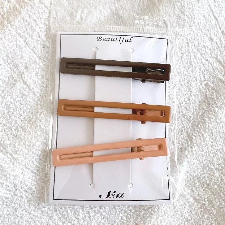 質感大地色長方形鴨夾/水滴型BB夾 3入款式:長方形