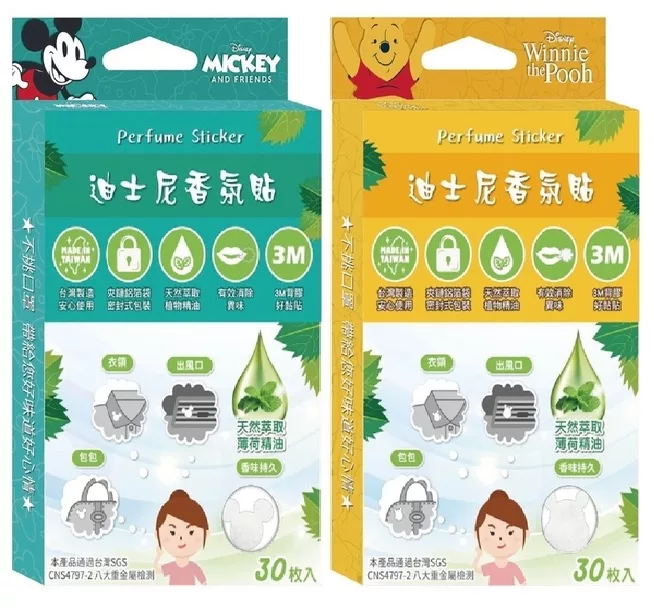 【商品介紹】 ✽✽ 清新薄荷 ✽✽ 規格/容量:15枚入 貼片尺寸:1.7×1.7cm 包裝尺寸:9x15x0.3cm 產地:台灣 味道:清新薄荷 成份:薄荷精油、不織布、PET ● 香味可持續6小時 ● 香味全部採用天然萃取的精油製成, ● 絕不添加任何化學香精,使用起來安全舒適, ● 貼在口罩上,更可消除異味與悶熱, ● 亦可貼於衣物、出風口及包包、飾品配件上, ● 隨時散發植崒香氛讓你擁有一天好心情 ——————————————————– ✽✽ 米奇/維尼 ✽✽ 規格/容量:30枚入 材質:聚對苯二甲酸乙二酯、不織布 貼片尺寸:1.4×1.8 cm 包裝尺寸:8.8x15x1.2cm 成份:薄荷精油 產地:台灣 成份:天然萃取薄荷精油 無論貼在哪裡,隨時散發植萃香氣。 台灣製造,安心使用。 天然萃取植物精油。 有效消除異味。 3M背膠好黏貼。 ——————————————————– ✽✽ (立體壓紋)米奇/三眼怪✽✽ 規格/容量:30枚入 材質:聚對苯二甲酸乙二酯、不織布 貼片尺寸:1.4×1.8 cm 包裝尺寸:8.8x15x1.2cm 成份:薄荷精油 產地:台灣 成份:檸檬+佛手柑+薄荷複方精油 無論貼在哪裡,隨時散發植萃香氣。 台灣製造,安心使用。 天然萃取植物精油。 有效消除異味。 3M背膠好黏貼。 ——————————————————– ✽✽角落小夥伴迷你香氛片✽✽ 擁有24種不同圖案 隨心黏貼好心情 植物性精油香氛 有效降低長期配戴口罩而產生的異味 藉由清新香氛舒緩提振精神 在外一整天檸檬清香持續散發~ ●獨立包裝-外出攜帶方便,輕薄無負擔 ●夾鍊袋設計-密封式包裝,避免氣味流失 ●使用3M背膠-黏性佳,撕下不留殘膠 ●高密度無紡布-無毒環保材質,透氣不傷衣布 ●使用好廣泛-隨處黏貼在您想貼的地方 正版授權,台灣製造 植物性配方及環保油墨印刷 通過英國土壤協會認證 ——————————————————– ✽✽ Hello Kitty香氛貼片48枚✽✽ ● 產品規格:直徑1.35公分/48枚入鋁袋包。 ● 產地:台灣。 ● 保存期限:3年。(未開封) ● 主要成分:採植物性配方檸檬草精油、薄荷精油、抗菌劑。 ● 材質:高密度無紡布無毒材質製成、採用3M背膠。 【使用方式】 1.撕下貼片,並將黏貼面貼於口罩外側適當位置。 2..可隨個人感受不同而調整接近或遠離口鼻。 3..香味貼片不只可以搭配口罩,也可貼於衣物或包包、飾品配件上。 【使用注意事項】 1. 嬰兒及2歲以下之兒童,孕婦及授乳婦女不宜使用本產品。 2.請置於嬰幼兒無法取得處,避免誤食。 3.香味至少持續6小時。 4.本產品請勿直接貼於皮膚。 5.請存放在陰涼處,避免高溫和陽光直射。 6.使用中如果感到不適,請停止使用。 【退換貨服務】 鑑賞期非試用期,退回產品必須是全新狀態且包裝完整 ( 保持產品、附件、包裝、廠商紙箱及所有附隨文件或資料之完整性 ) 。 【購買注意事項】 網路店所售出的商品僅可在網路店進行退換貨服務,將無法在全國佳瑪實體門市進行退換貨、退款服務。若與實體門市價格不同時,請以網站公告為主。”