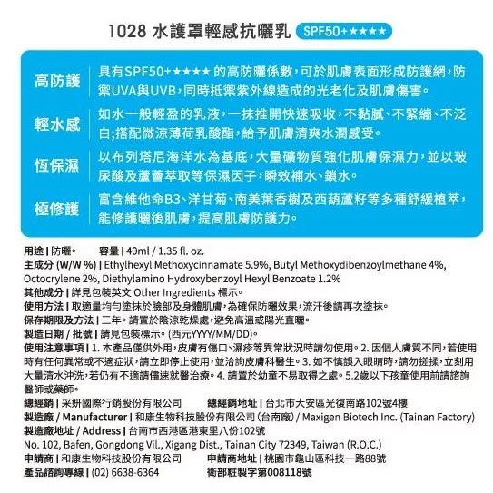【商品規格】 規格/容量:40ml/支 重量:65g 尺寸:長30(mm) * 寬85(mm) * 高170(mm) 產地:台灣 貨源:國內原廠公司貨 保存期限:3年 (效期:2023/12) 【商品介紹】 高防護- 具有SPF50+的高防曬係數,可於肌膚表面形成防護網,防禦UVA與UVB,同時抵禦紫外線造成的肌膚傷害。 輕水感- 如水一般輕盈的乳液,一抹推開快速吸收,不黏膩、不緊繃、不泛白; 搭配微涼薄荷乳酸酯,給予肌膚清爽水潤感受。恆保濕- 以布列塔尼海洋水為基底,大量礦物質強化肌膚保濕力,並以玻尿酸及蘆薈萃取等保濕因子,瞬效補水、鎖水。 【成份說明】 詳見外包裝 【使用方式】 取適量均勻塗抹於臉部及身體肌膚,為確保防曬效果,流汗後請再次塗抹。 【使用注意事項】 1.本產品僅供外用,皮膚有傷口、濕疹等異常狀況時請勿使用。 2.因個人膚質不同,若使用時有任何異常或不適症狀,請立即停止使用,並洽詢皮膚科醫生。 3.如不慎誤入眼睛時,請勿搓揉,立刻用大量清水沖洗,若仍有不適請儘速就醫治療。 4.請置於幼童不易取得之處。 5.2歲以下孩童使用前請諮詢醫師或藥師。 【退換貨服務】 鑑賞期非試用期,退回產品必須是全新狀態且包裝完整 ( 保持產品、附件、包裝、廠商紙箱及所有附隨文件或資料之完整性 ) 。 【購買注意事項】 網路店所售出的商品僅可在網路店進行退換貨服務,將無法在全國佳瑪實體門市進行退換貨、退款服務。若與實體門市價格不同時,請以網站公告為主。