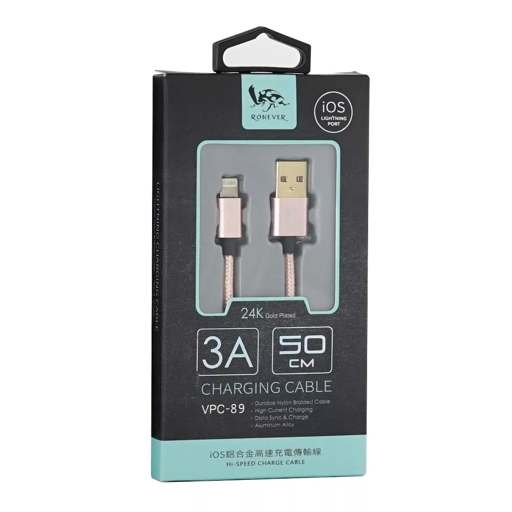 / 3A鋁合金充電線50CM(iOS)規格:玫瑰金