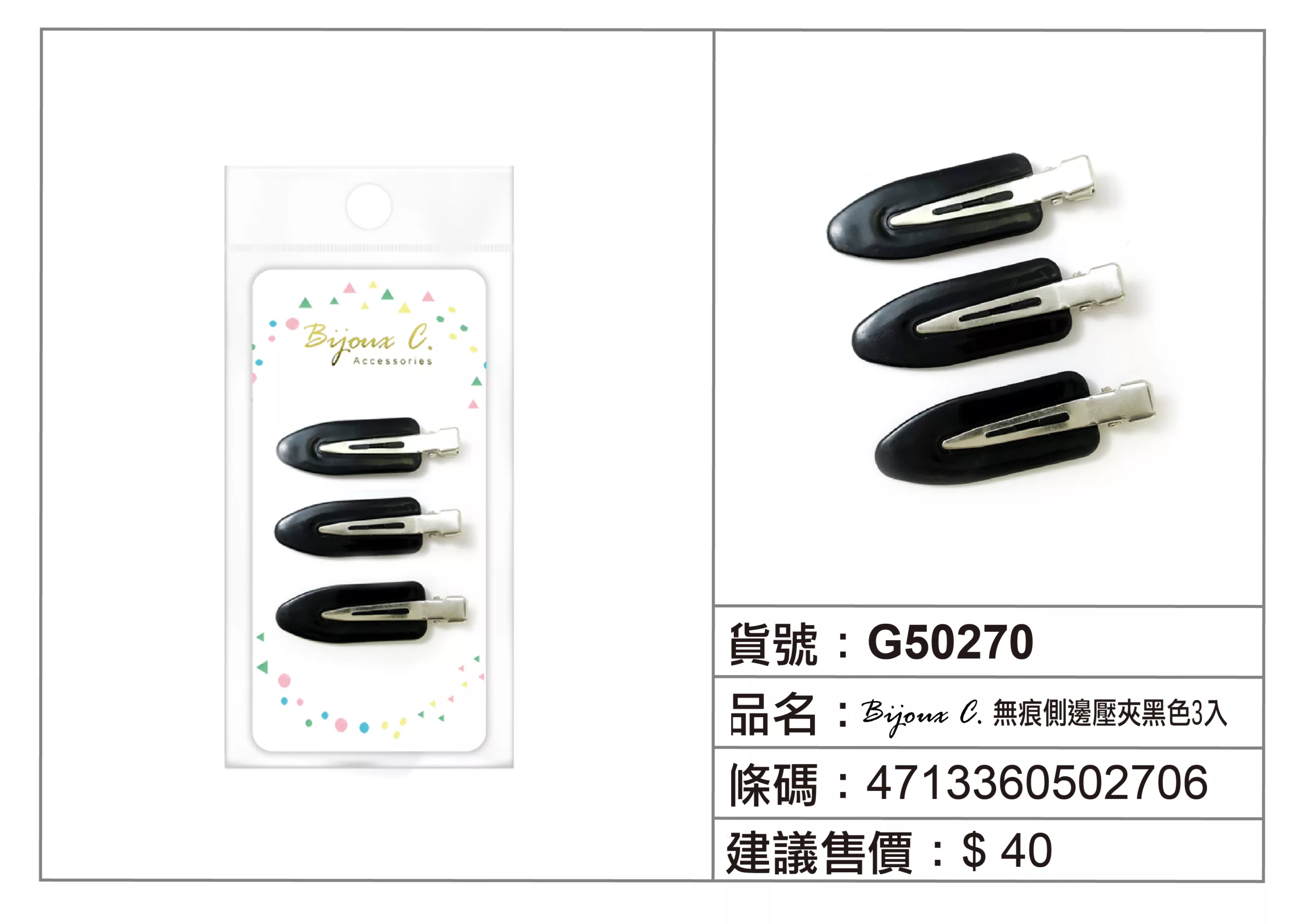 Bijoux C.韓系無痕側邊壓夾(混款/黑色)3入瀏海夾 髮夾款式:黑色 數量