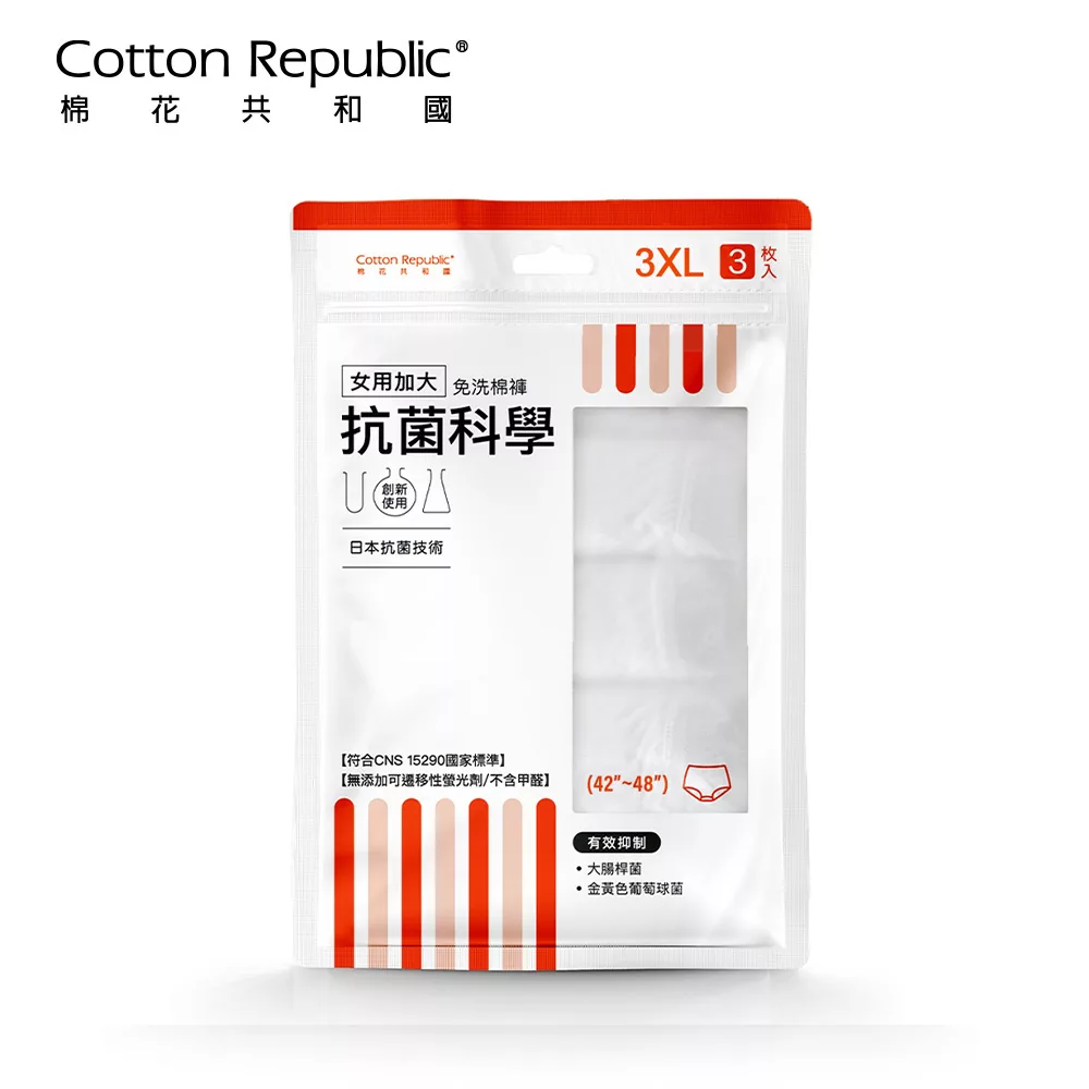 CR 棉花共和國 抗菌科學 女用生理免洗棉褲 3入【佳瑪】旅遊 旅行 舒適 方便 免洗褲加大 3XL