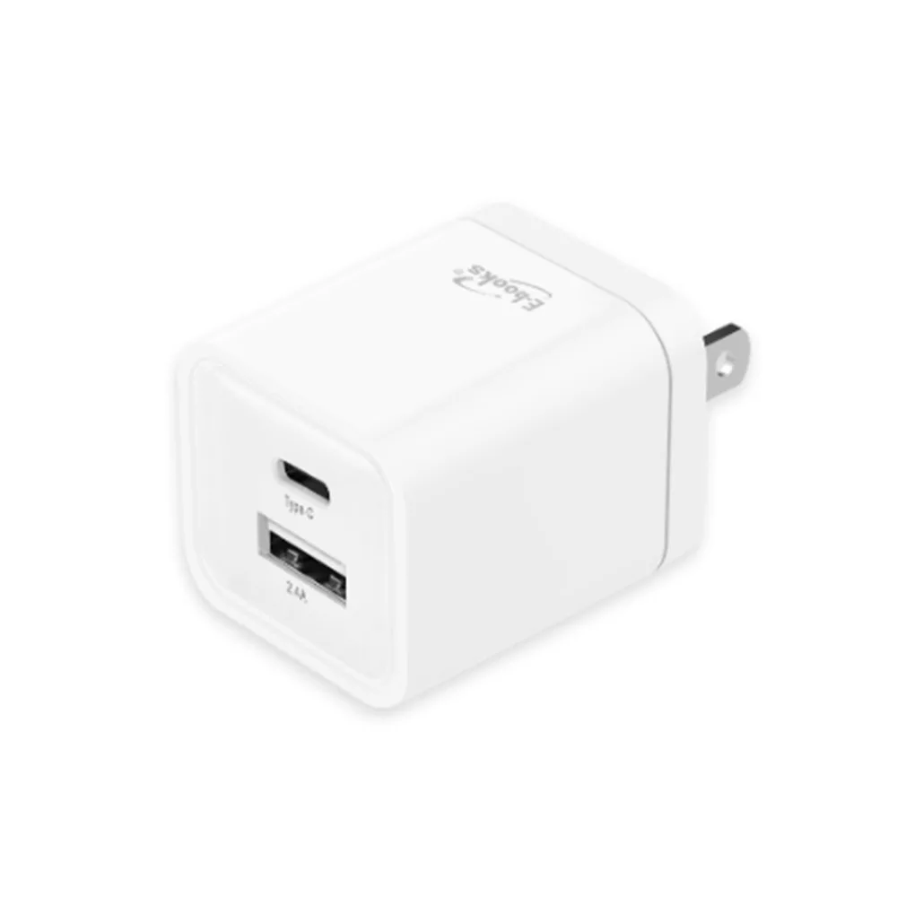 E-books B59 智能12W Type-C+USB雙孔快速充電器 充電頭 豆腐頭 BSMI合格認證規格:白