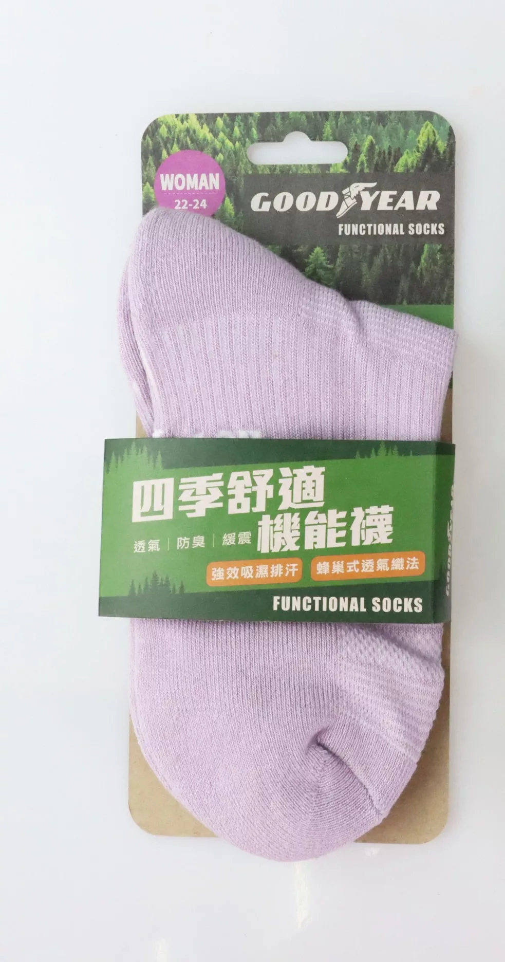 / Goodyear固特異 四季舒適機能襪 吸濕排汗透氣尺寸顏色:2224cm紫粉
