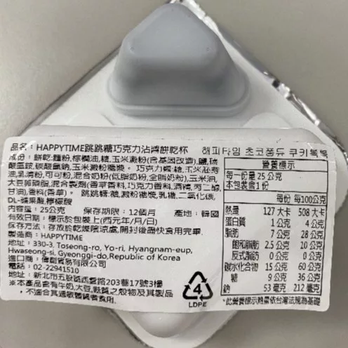 【商品規格】 25g 【商品介紹】 韓國超市熱賣商品 不會太過甜膩但又濃郁的巧克力醬 搭配酥脆的餅乾棒 再來特別的「跳跳糖」 不同於以往的搭配,給你不一樣的感受。 【成份說明】 如圖所示 【過敏原訊息】 本產品含有牛奶、大豆及其製品,不適合其過敏體質者使用。 【有效日期說明】 90天~365天-以消費者收受日起算,至少距有效日期前30日以上 【使用注意事項】 請置於陰涼乾燥處,避免高溫或陽光直曬。 【退換貨服務】 鑑賞期非試用期,退回產品必須是全新狀態且包裝完整 ( 保持產品、附件、包裝、廠商紙箱及所有附隨文件或資料之完整性 ) 。 【購買注意事項】 網路店所售出的商品僅可在網路店進行退換貨服務,將無法在全國佳瑪實體門市進行退換貨、退款服務。若與實體門市價格不同時,請以網站公告為主。 ●依據消費者保護法之規定,食品類商品屬於易於腐敗、保存期限較短之商品,蝦皮鑑賞期規範效期在兩個月內之商品,於收受商品後將無法享有猶豫期之權益且不得辦理退貨。 ●網頁商品會因為使用不同的品牌螢幕以及解析度不同,造成圖片顏色呈現略有不同,請以實品顏色為準。