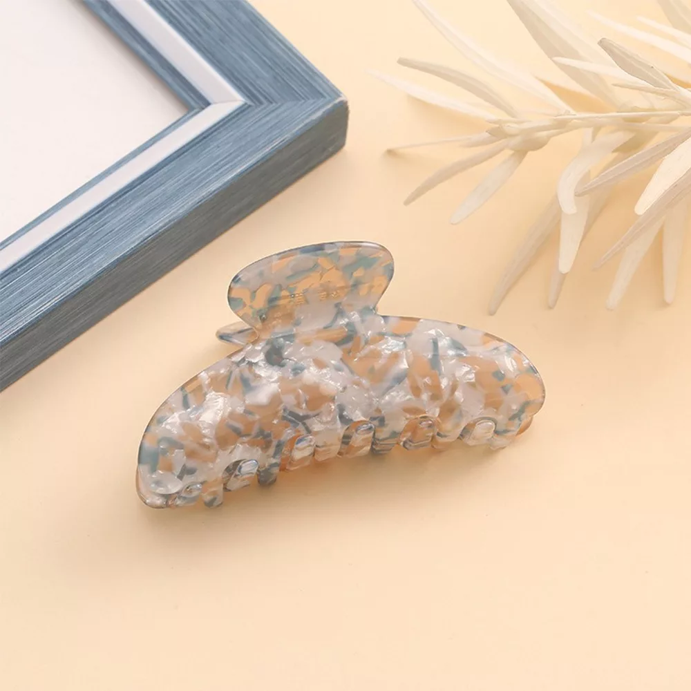 LOVE RECIPE 簡約韓系碎花鯊魚夾 醋酸抓夾 沙夾 休閒 抓夾 高質感髮夾 半頭 全頭 新款規格:藍