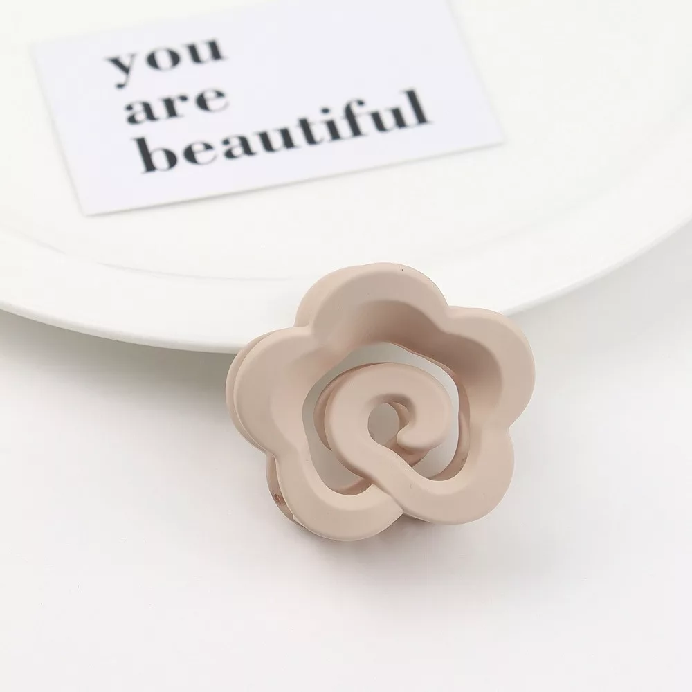 LOVE RECIPE 霧面茶花奶茶系抓夾 鯊魚夾 半頭 氣質 秋冬 茶花 霧面規格:奶咖色