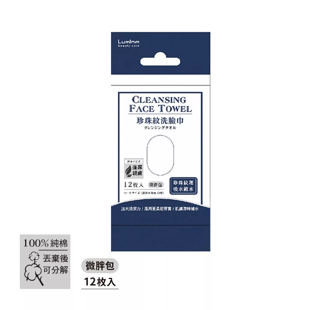 Lumina棉柔珍珠紋洗臉巾 (大胖包/小胖包/微胖包) 攜帶方便 旅遊 隨身包規格:微胖包12枚