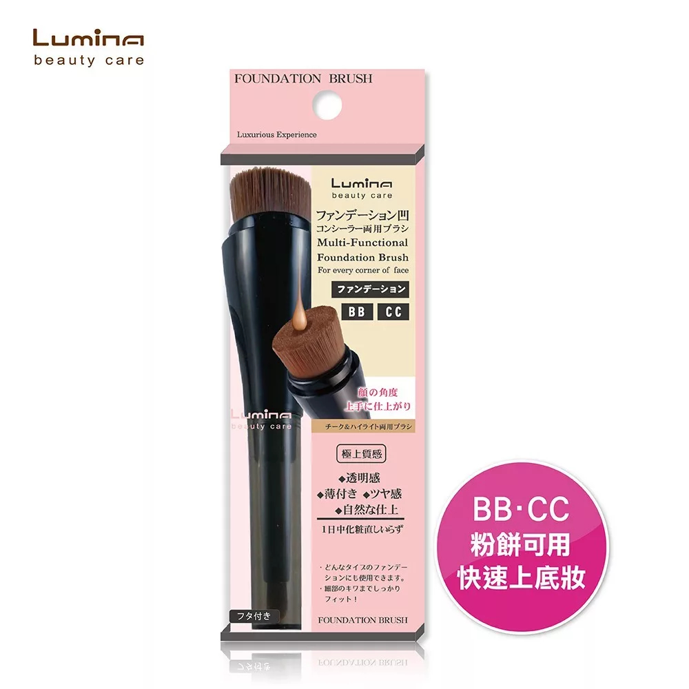【商品規格】 規格/容量:1入 顏色:黑色 尺寸:52×155×t27mm 產地:中國 【商品介紹】 1.平頭斜角,能完整接觸肌膚,服貼妝容。 2.中央凹槽可將粉底液滴入,有助於快速上妝。 【成份說明】 材質:刷毛-PBT極細纖維刷毛; 柄身&蓋子-ABS塑料。 【使用方式】 1.粉底刷頭:平頭斜角,能完整接觸肌膚,服貼妝容; 中央凹槽可將粉底液滴入,有助於快速上妝。 2.遮瑕刷頭:集中富彈性的刷毛,也可做唇刷/暈染眼影刷使用。 【使用注意事項】 1.闔蓋時,以微微旋轉方式,理好刷毛後輕扣上即可。 2.使用後以清水洗淨後輕甩乾,或用面紙微微壓乾。 3.避免潮濕曝曬環境。 4.請放置於兒童無法拿取處。 【退換貨服務】 鑑賞期非試用期,退回產品必須是全新狀態且包裝完整 ( 保持產品、附件、包裝、廠商紙箱及所有附隨文件或資料之完整性 ) 。 【購買注意事項】 網路店所售出的商品僅可在網路店進行退換貨服務,將無法在全國佳瑪實體門市進行退換貨、退款服務。若與實體門市價格不同時,請以網站公告為主。