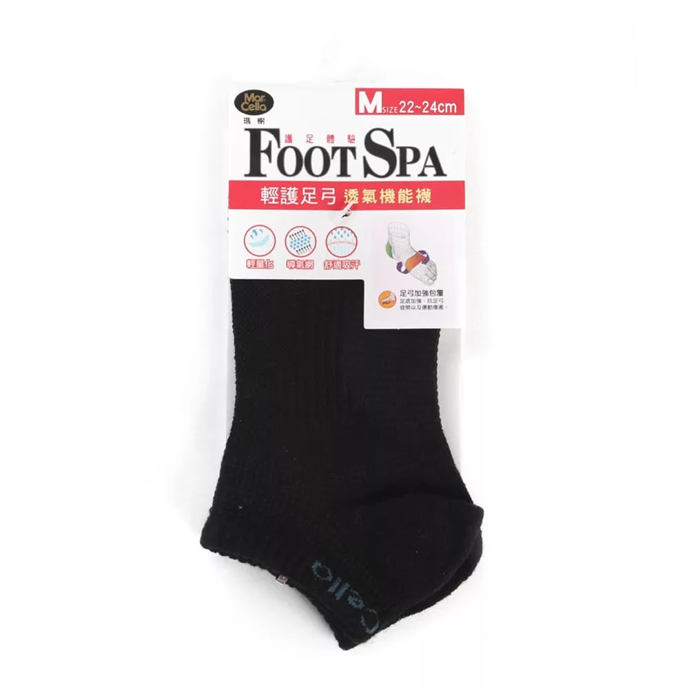 / MarCella瑪榭 FootSpa輕護足弓透氣運動襪-素面M黑 MS-21723