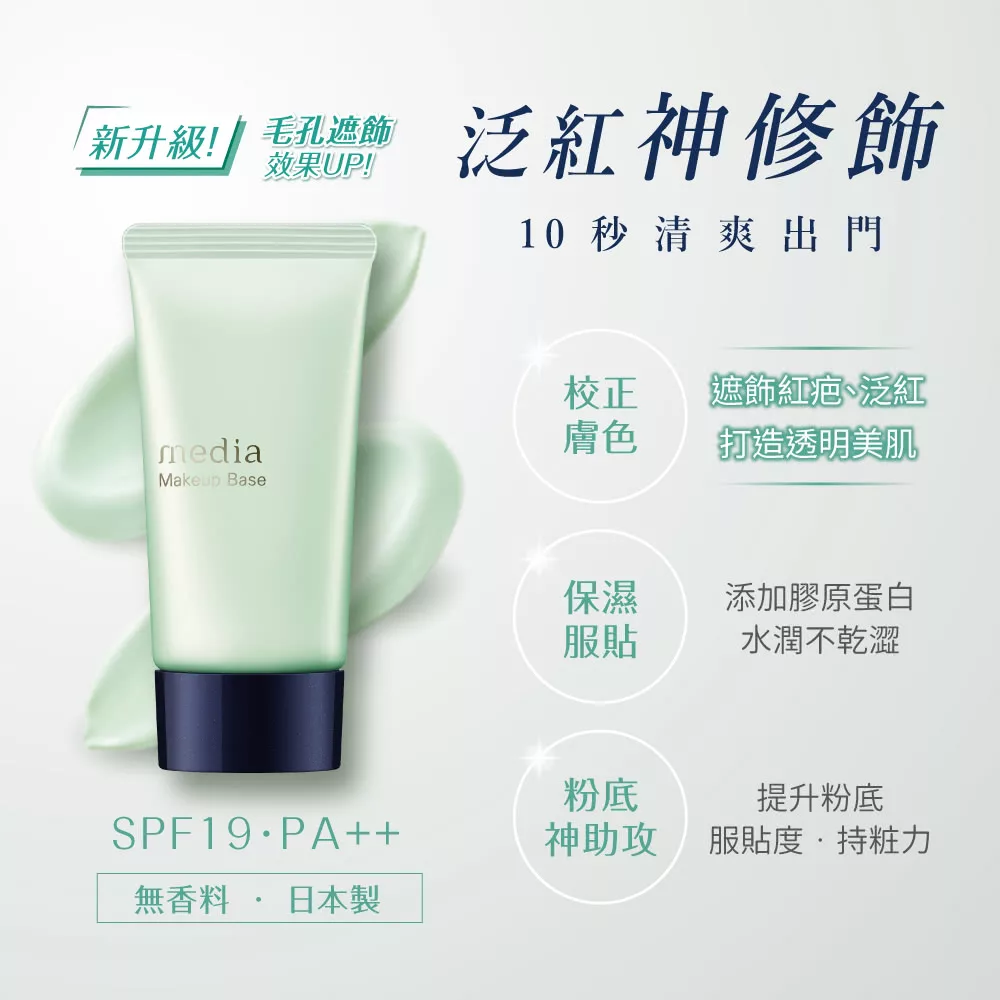 shopee simple 10232113 4973167828038 media媚點 美肌修色粧前乳(綠/橘)【佳瑪】橘色(修飾暗沉) 1 0 visible 【商品規格】 規格/容量:30g 尺寸:2.5×4.95×12.45cm 產地:日本 貨源:國內原廠公司貨 保存期限:3年 【商品介紹】 ●綠:修飾泛紅,提升肌膚透明感 打造明亮光采的透明美肌 ●橘:修飾暗沉,提亮膚色 展現健康明亮肌 〇水溶性膠原蛋白(保濕成分) 〇防止脫粧的服貼粉末 <雲母、寒天> ◇淡化毛孔的遮飾效果 ◇無香料 ◇適合各種季節 【成份說明】 詳見外包裝 【使用方式】 ・塗抹粉底前,取適量自面積較大的額頭、臉頰開始,由中心向外均勻塗抹。 ・(綠): 針對臉頰等特別在意的泛紅部位,多次疊擦可使效果更佳。 【使用注意事項】 1.肌膚若產生不適,如有傷口或濕疹等,請勿使用。 2.使用中若感到紅腫、發癢、刺痛等異常狀況,請暫停使用。並建議您詢問皮膚科醫師。 3.請勿放置於高溫及陽光直射處。 4.本產品之SPF與PA數值,均透過國際認可之測定方式得出,可作為選購商品時的基準。 5.可搭配其他抗紫外線化粧品使用,提升防曬效果。 【退換貨服務】 鑑賞期非試用期,退回產品必須是全新狀態且包裝完整 ( 保持產品、附件、包裝、廠商紙箱及所有附隨文件或資料之完整性 ) 。 【購買注意事項】 網路店所售出的商品僅可在網路店進行退換貨服務,將無法在全國佳瑪實體門市進行退換貨、退款服務。若與實體門市價格不同時,請以網站公告為主。”
