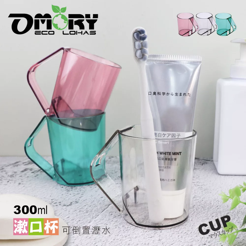 OMORY 沁透倒立可瀝水漱口杯透明灰、薄荷綠、薔薇粉顏色:透明灰