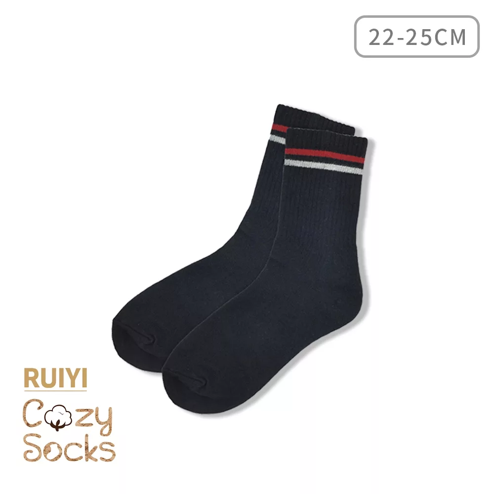 RUIYI舒適棉素色長襪 少女襪 3/4襪規格:黑條紋