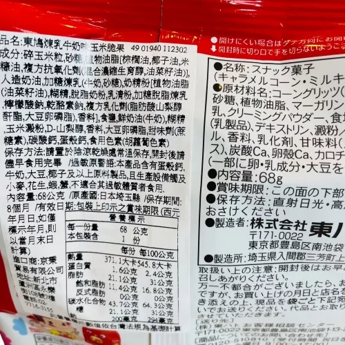 / Tohato 東鳩 玉米脆果(煉乳牛奶)68g milky版